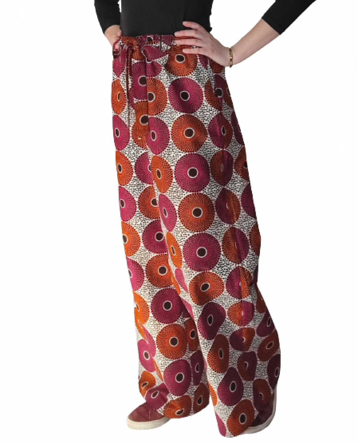 <p>Description</p><ul><li>Pantalon ample </li><li>Taille élastiquée</li><li>Ceinture </li><li>Tissu WAX 100% COTON </li></ul><p>Entretien</p><ul><li>Lavage en machine à 30°</li><li>Ne pas blanchir</li><li>Ne pas sécher en machine</li><li>Repasser à froid</li><li>Nettoyage à sec</li></ul>
