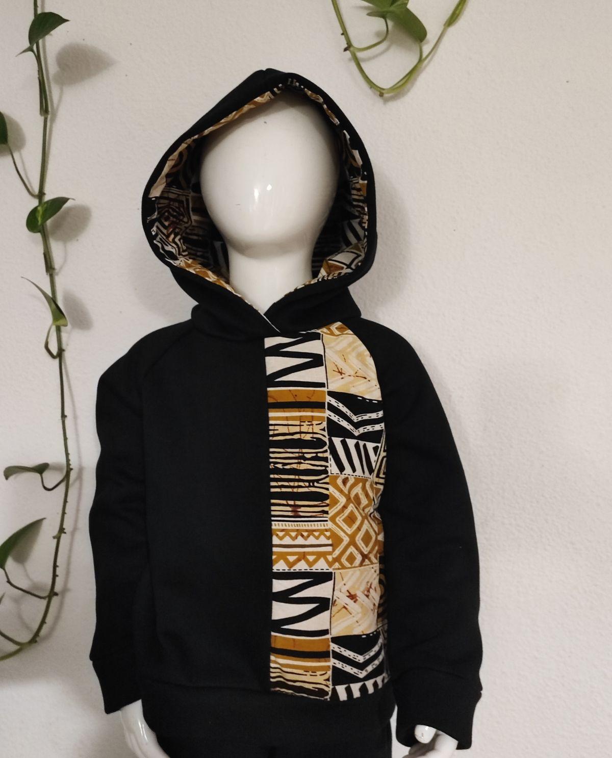 <p>Description </p><ul><li>Sweat à capuche unisexe </li><li>Tissus : Sweat et Wax</li><li>Pas de poche </li><li>Capuche: Capuche en Wax et tissu sweat</li></ul><p> </p><p>Entretien</p><ul><li>Lavage en machine à 30°</li><li>Pas de sèche-linge</li></ul><p> </p><p>Fabrication à la demande sur mesure et personnalisable </p>